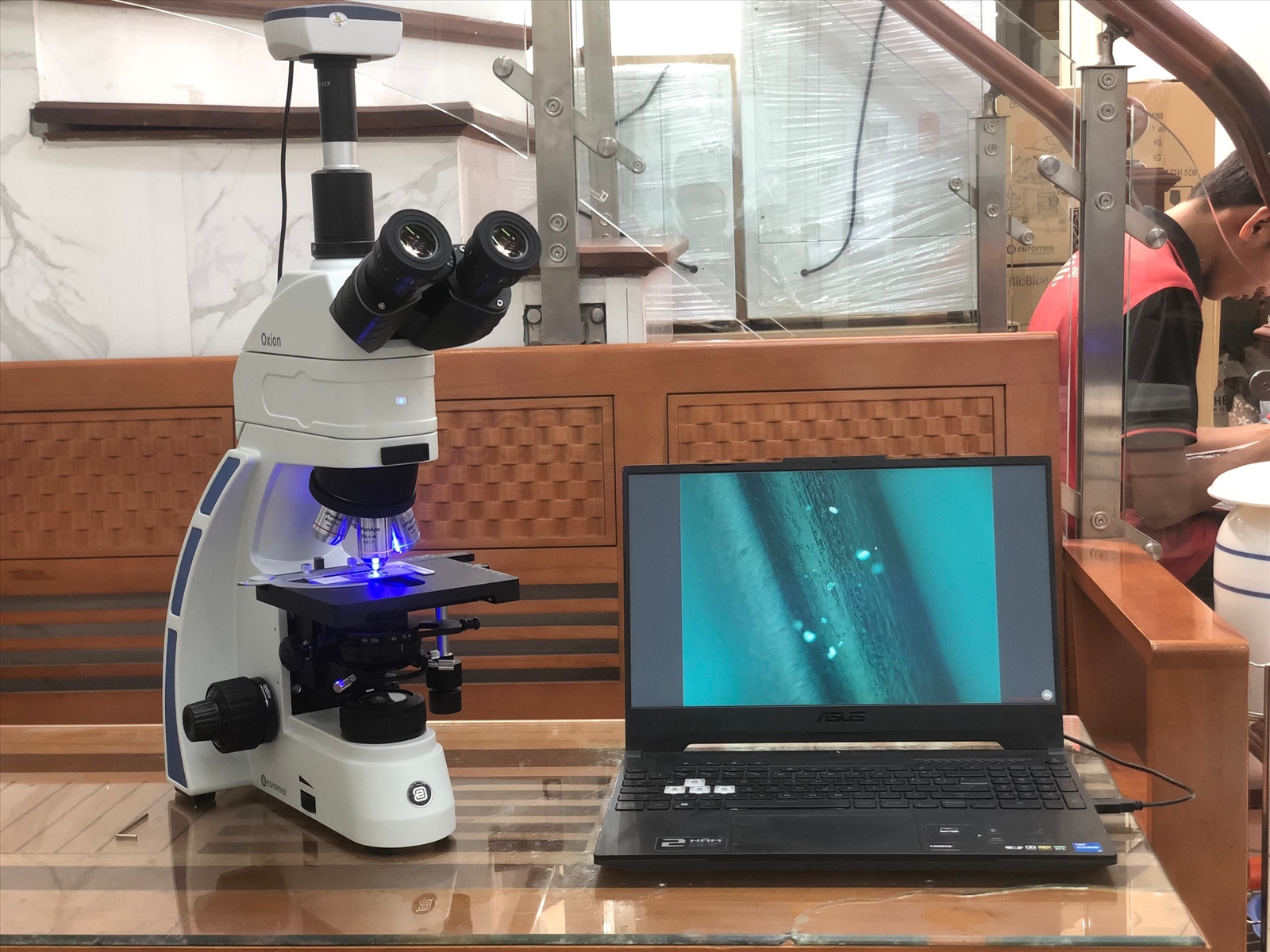 - Máy chính gồm thân kính, mâm gắn vật kính Plan semi apo Fluarex 4x/ 10x/ S40x/ S100x (soi dầu) và thị kính HWF 10x/22 mm