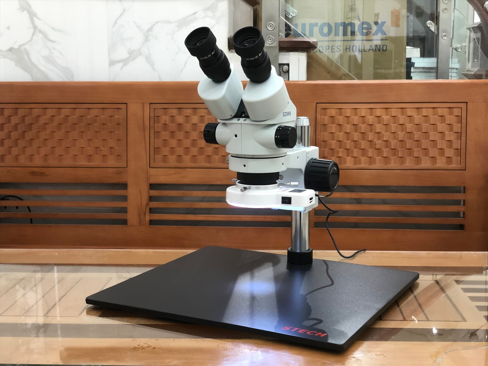 - Kính hiển vi SZM7045-SERIES có trường làm việc lớn và diện tích quan sát được dưới kính khá rộng, có thể soi nhìn thấy hết bản mạch khi sử dụng kèm lens zoom chuyên dụng.